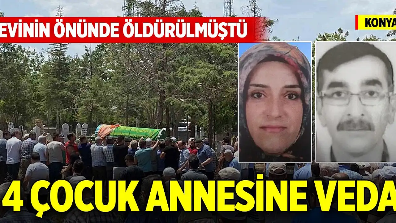 Konya'da evinin önünde öldürülen 4 çocuk annesi son yolculuğuna uğurlandı