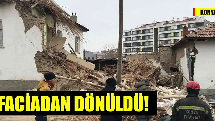 Konya'da faciadan dönüldü! Hasarlı ev çöktü