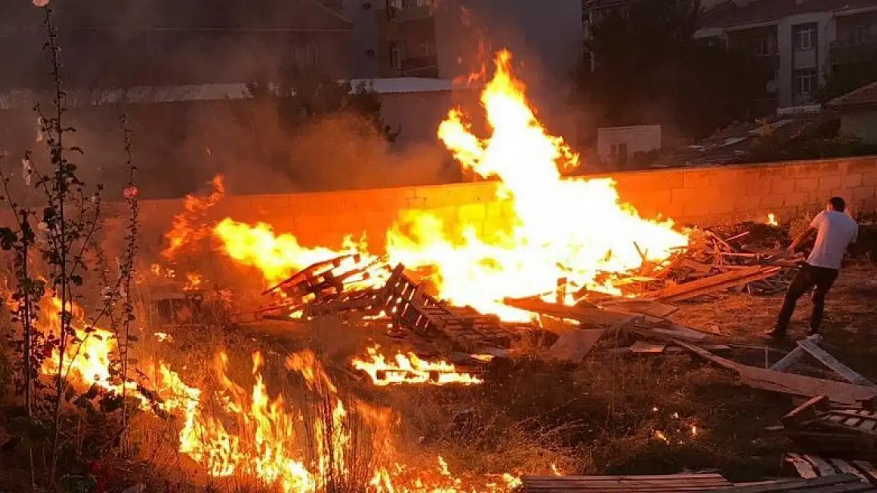 Konya'nın Kulu ilçesinde inşaat tahtalarının bulunduğu arazide çıkan yangın, itfaiye ekipleri tarafından yakınlarda bulunan evlere sıçramadan söndürüldü.