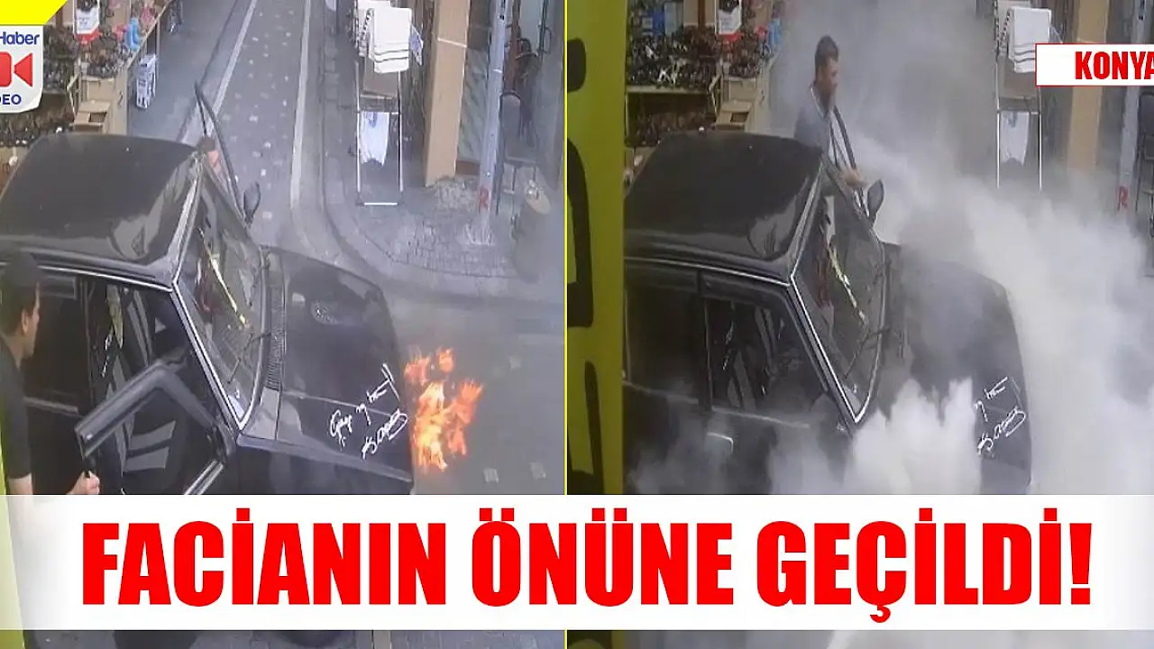 Konya'da seyir halindeki otomobilin motor kısmında çıkan yangın korkuya neden oldu, facianın önüne geçildi.