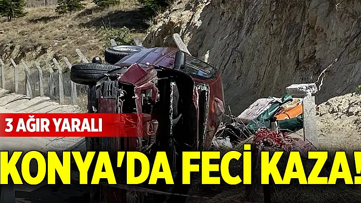 Konya'da sürücünün kontrolünden çıkan hafif ticari aracın devrilmesi sonucu 3 kişi ağır yaralandı.