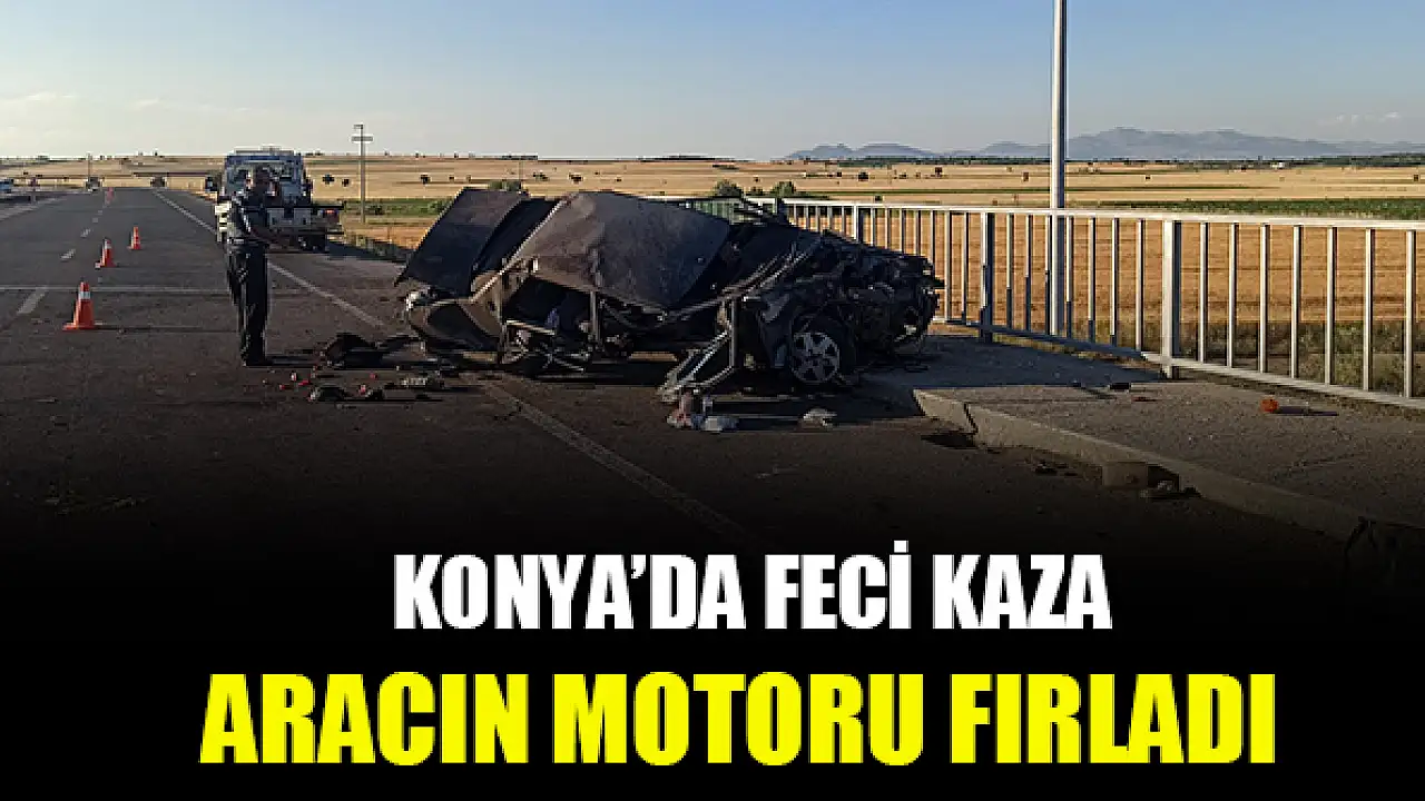 Konya'nın Seydişehir ilçesinde köprü bariyerlerine çarpan otomobilin motoru yerinden fırlarken, kazada 1'i ağır 2 kişi yaralandı.