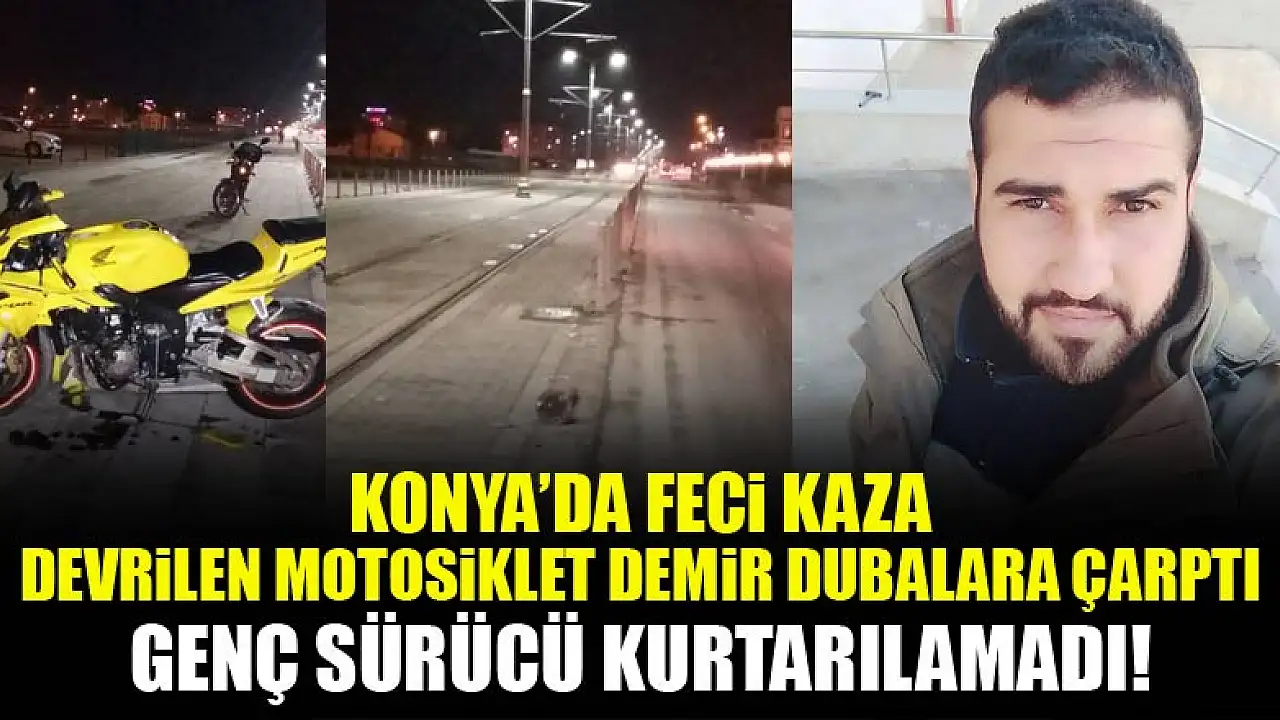 KONYA'da girdiği virajda devrilip, dubalara çarpan motosikletin sürücüsü Abdülkadir Arpacı (24), hayatını kaybetti.