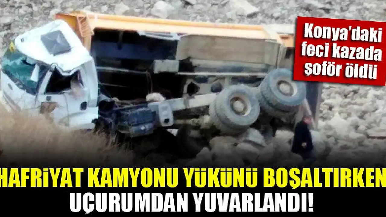 Konya'da feci kaza! Hafriyat kamyonu yükünü boşaltırken uçurumdan yuvarlandı: 1 ölü