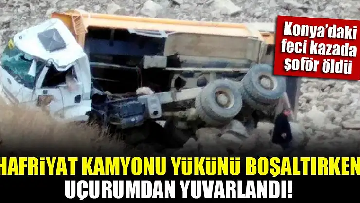 Konya'nın Hüyük ilçesinde kasasındaki hafriyatı boşaltmak isteyen kamyonun uçurumdan yuvarlanması sonucu meydana gelen trafik kazasında 1 kişi hayatını kaybetti.