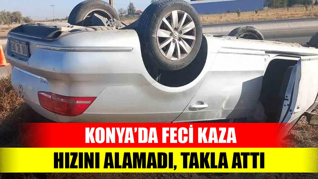 Konya'da feci kaza! Hızını alamadı, takla attı