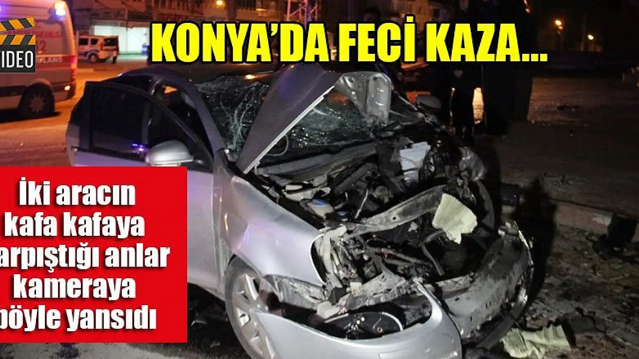 Konya'da feci kaza... İki aracın kafa kafaya çarpıştığı anlar kameraya böyle yansıdı