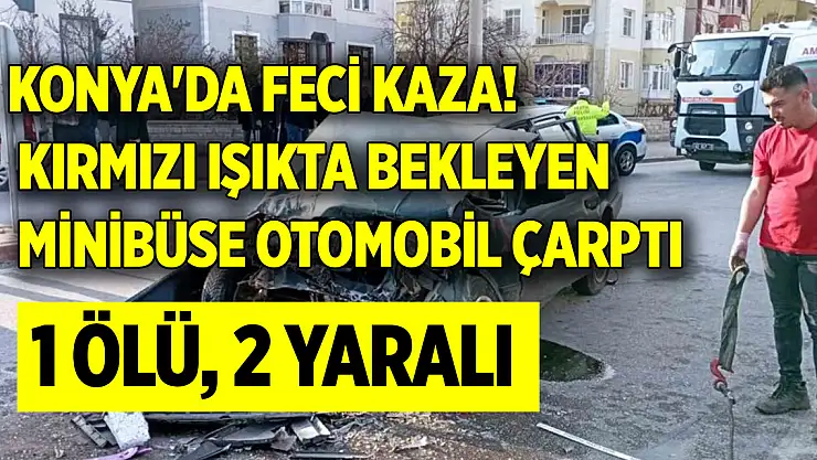 Konya'da kırmızı ışıkta bekleyen servis minibüsüne otomobilin arkadan çarpması sonucu meydana gelen trafik kazasında otomobil sürücüsü hayatını kaybetti, minibüsteki 2 kişi yaralandı.