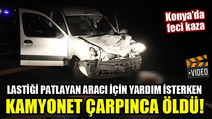 Konya'da kullandığı aracın lastiği patlayınca yolda yardım isteyen sürücüye kamyonet çarptı. 18 yaşındaki genç sürücü hayatını kaybetti.