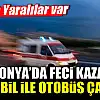 Konya'da otomobil ile otobüsün çarpışması sonucu 1 kişi öldü, 3 kişi yaralandı.