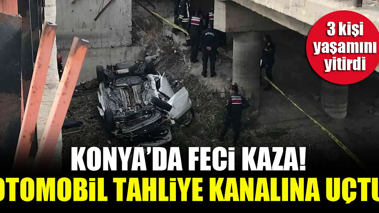 Konya'da kontrolden çıkan otomobil tahliye kanalına uçtu. Sabah saatlerinde meydana gelen kaza saatler sonra fark edilirken, kazada 3 kişi hayatını kaybetti.