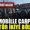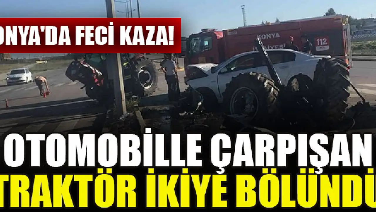 Konya'da feci kaza! Otomobille çarpışan traktör ikiye bölündü