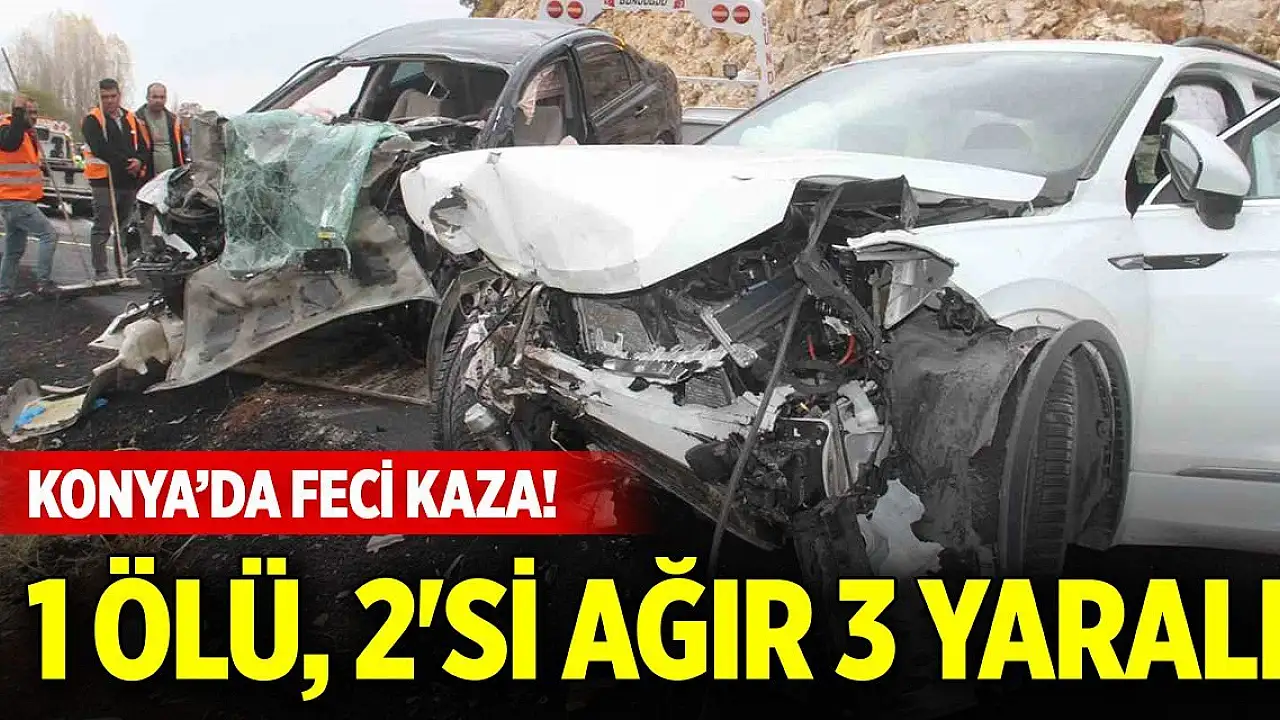 Konya'da iki otomobilin çarpışması sonucu meydana gelen kazada 1 kişi öldü, 2'si ağır 3 kişi de yaralandı.