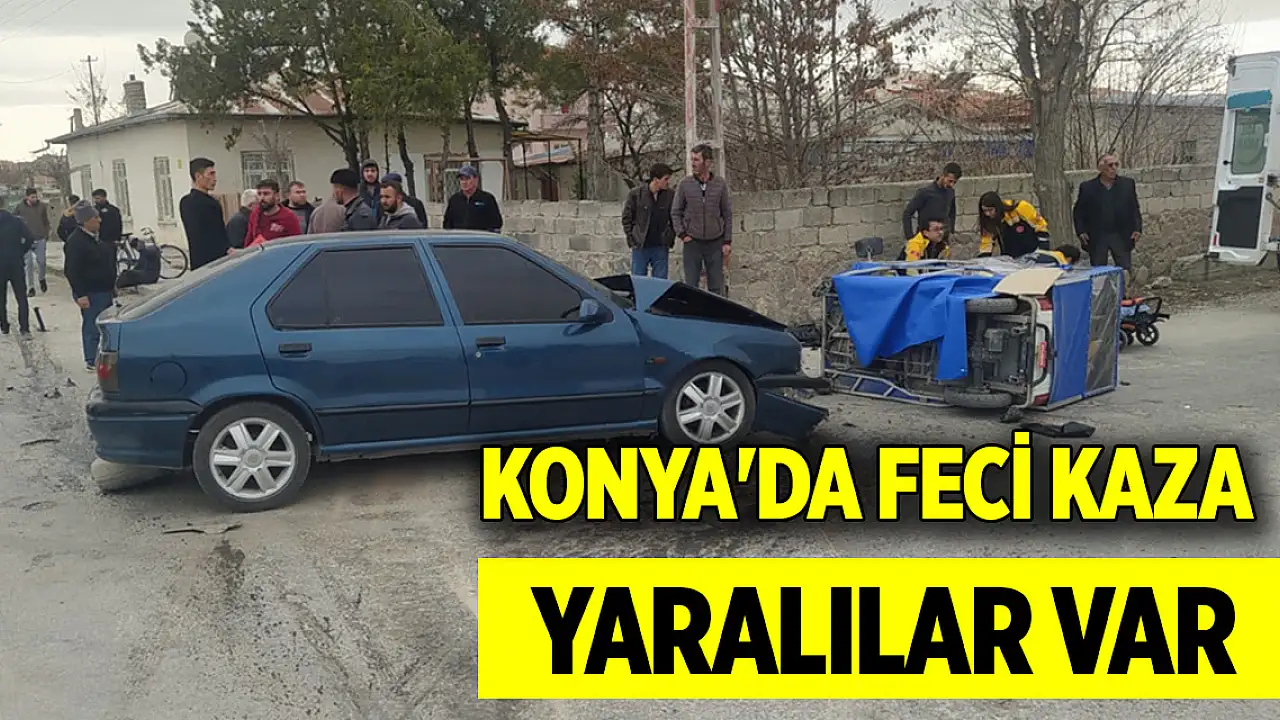 Konya'da iki otomobil ile üç tekerli motosikletin karıştığı kazada 4 kişi yaralandı.