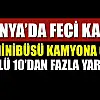 Konya'da yolcu minibüsünün kamyona çarpması sonucu meydana gelen kazada 2 kişi hayatını kaybetti, 10'dan fazla kişi yaralandı.