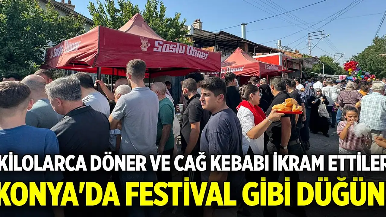 Konya'da festival gibi düğün! Kilolarca döner ve cağ kebabı ikram ettiler