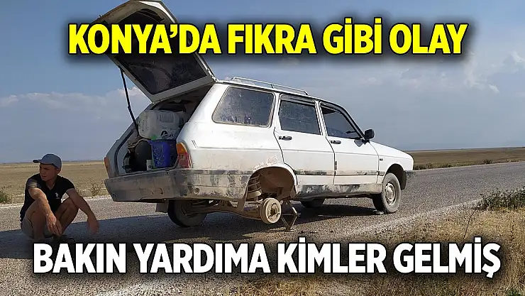 Konya'da fıkra gibi olay Lastik patlayınca bakın yardıma kimler gelmiş