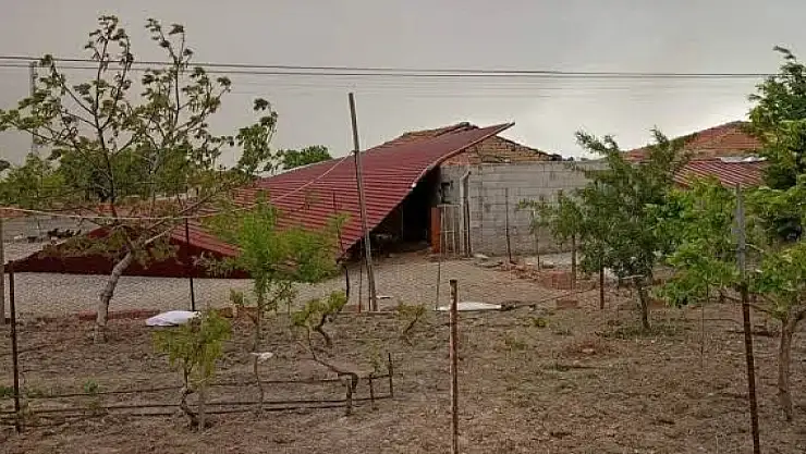 Kulu ilçesi Bozan Mahallesi'nde kuvvetli rüzgar nedeniyle bir evin bahçe duvarları yıkıldı, müstakil bir evin kömürlük ve garaj çatısı kullanılamaz hale geldi.