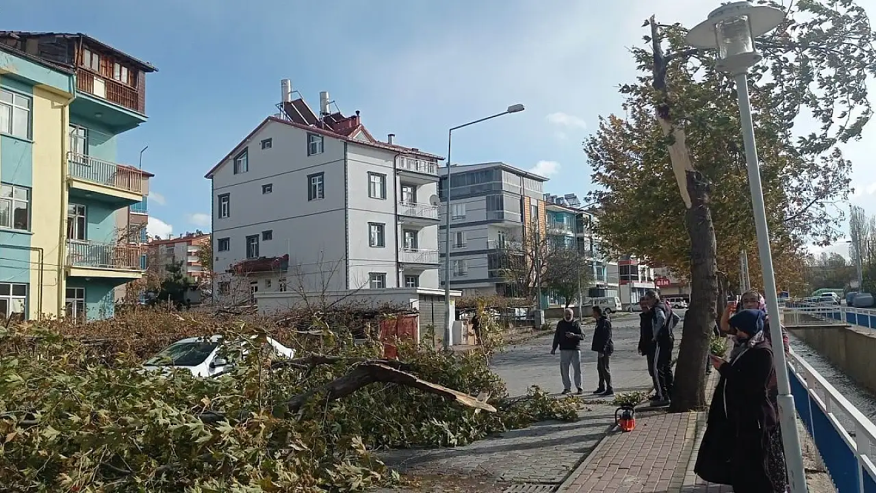 Konya'nın Beyşehir ilçesinde etkili olan şiddetli rüzgar nedeniyle kırılan ağaç park halindeki otomobilin üzerine devrildi. Otomobilin zarar gördüğü fırtınada şans eseri yaralanan olmadı.