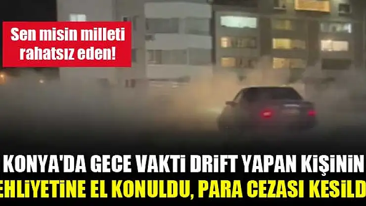 Konya'da gece vakti drift yapan kişinin ehliyetine el konuldu, para cezası kesildi