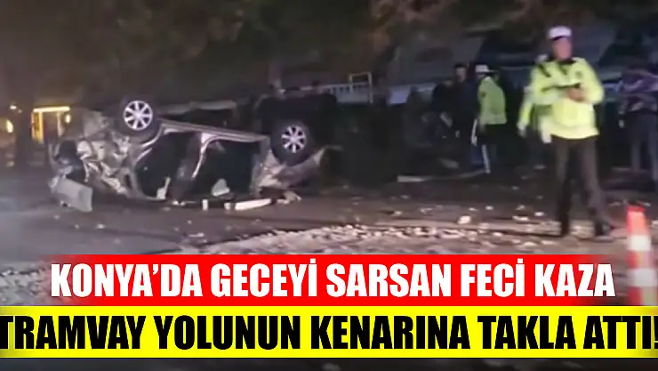 Konya'da akşam saatlerinde meydana gelen feci kazada araç takla attı.