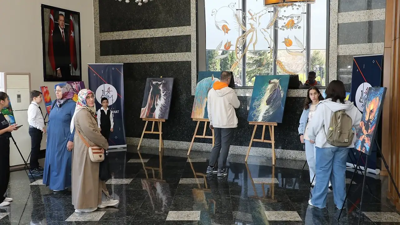 Karatay Belediyesi Hizmet Binası girişinde açılan sergide, Görsel Sanatlar Bölümü'nde eğitim gören 24 öğrencinin özenle hazırladığı 35 eser, sanatseverlerin beğenisine sunuldu.