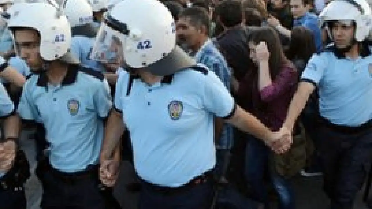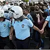 Protestocu grup, çevik kuvvet otobüsüne bindirilerek alandan uzaklaştırıldı.