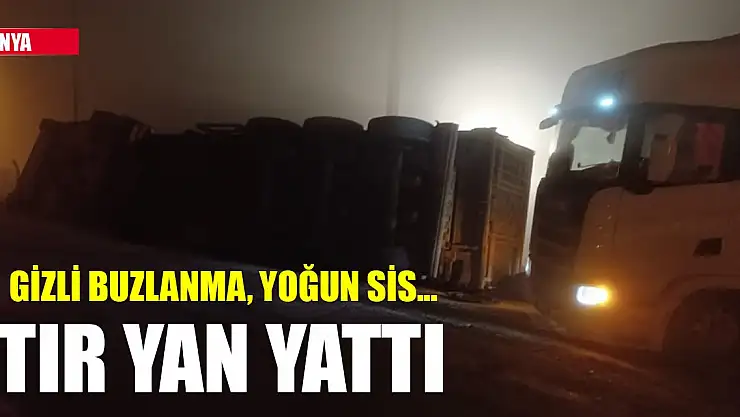 Konya'da tır, gizli buzlanma ve sisin etkili olduğu yolda devrildi. Tırın devrilmesi sonucu yaralanan sürücü tedavi altına alındı.