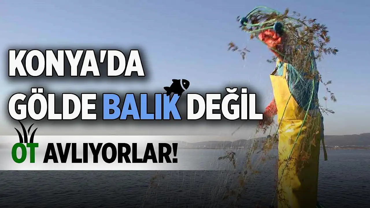 Konya'da gölde balık değil, ot avlıyorlar