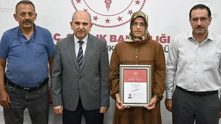 Konya'da görev şehidi sağlık çalışanının belgesi eşine teslim edildi