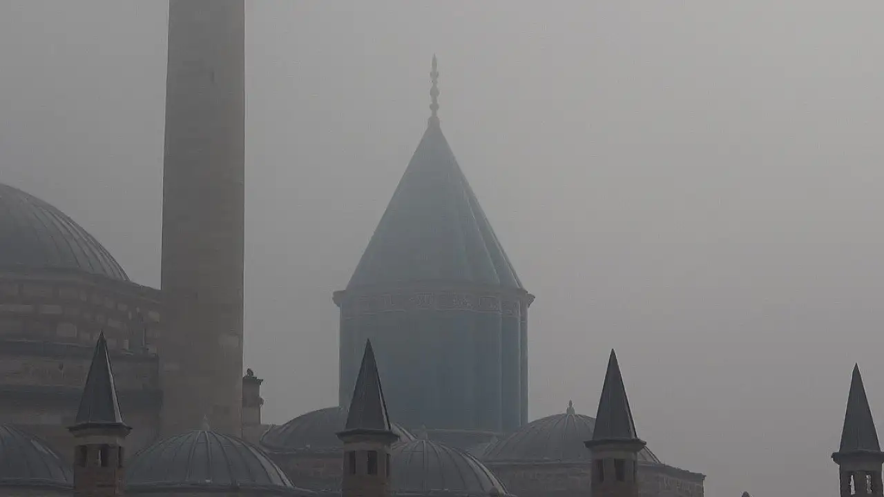 Konya'da sabah erken saatlerde etkili olan yoğun sis hayatı olumsuz etkilerken, uçak seferlerinde aksamalar yaşandı. Mevlana Müzesi ise siste kayboldu.