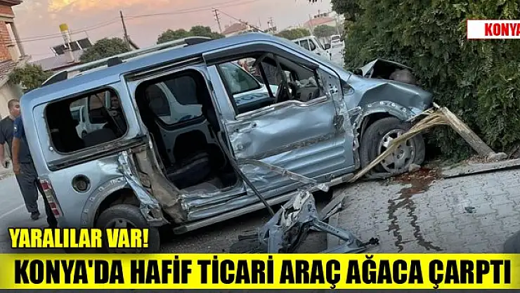Konya'da hafif ticari araç ağaca çarptı, 5 kişi yaralandı
