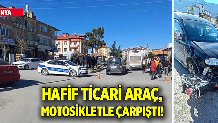 Alişan B. (28) idaresindeki 16 AGG 327 plakalı hafif ticari araç, Akşehir Seyran Mahallesi Sanayi Caddesi Sanayi Kavşağı'nda E.S. (16) yönetimindeki 42 AJH 082 plakalı motosiklet ile çarpıştı.