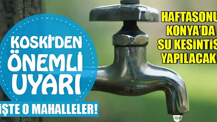 KOSKİ'den yapılan açıklamada, Konya'da haftasonunda bazı bölgelerde su kesintisi yapılacağı bildirildi. İşte su kesintisi yapılacak olan o mahalleler.