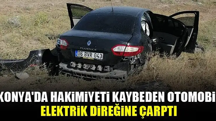 Konya'da hakimiyeti kaybeden otomobil elektrik direğine çarptı