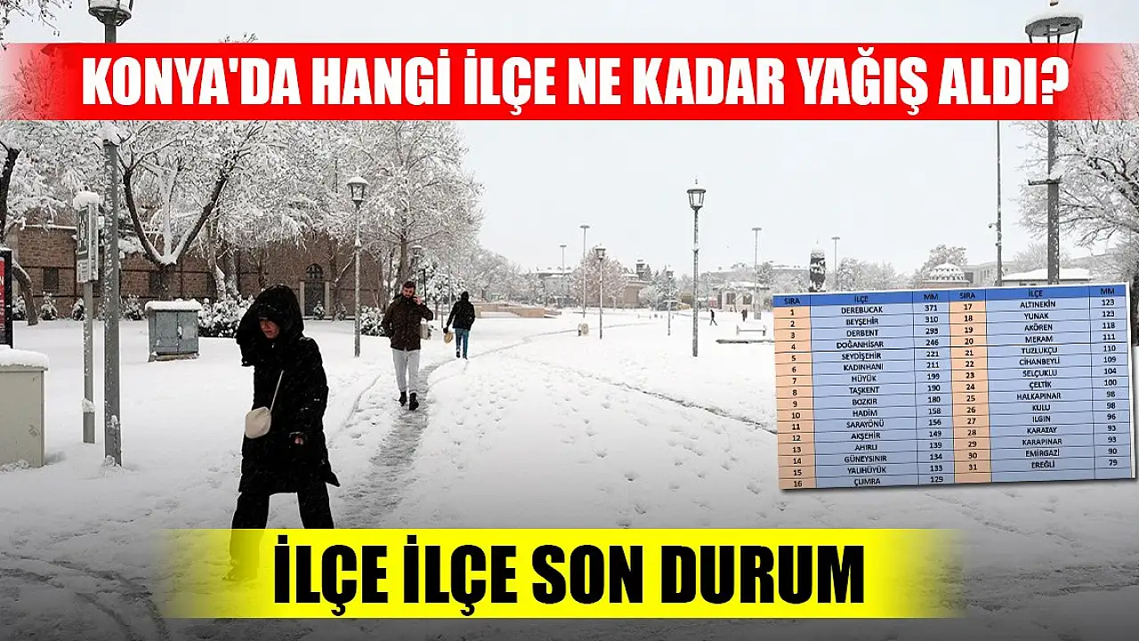 Listede Derebucak, Beyşehir, Derbent ilk üç sırayı alırken, Karapınar, Emirgazi ve Ereğli ise en az yağış alan ilçeler oldu.