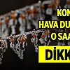Meteoroloji 8. Bölge Müdürlüğünden alınan son bilgilere göre bugün bölge genelinin parçalı ve çok bulutlu, Konya'nın güney ve batısı, Karaman il geneli ve Niğde'nin güney kesimlerinin aralıklı hafif kar yağışlı geçeceği tahmin ediliyor. Sabah ve gece saatlerinde yer yer pus hadisesi ile birlikte buzlanma ve don olayı bekleniyor.