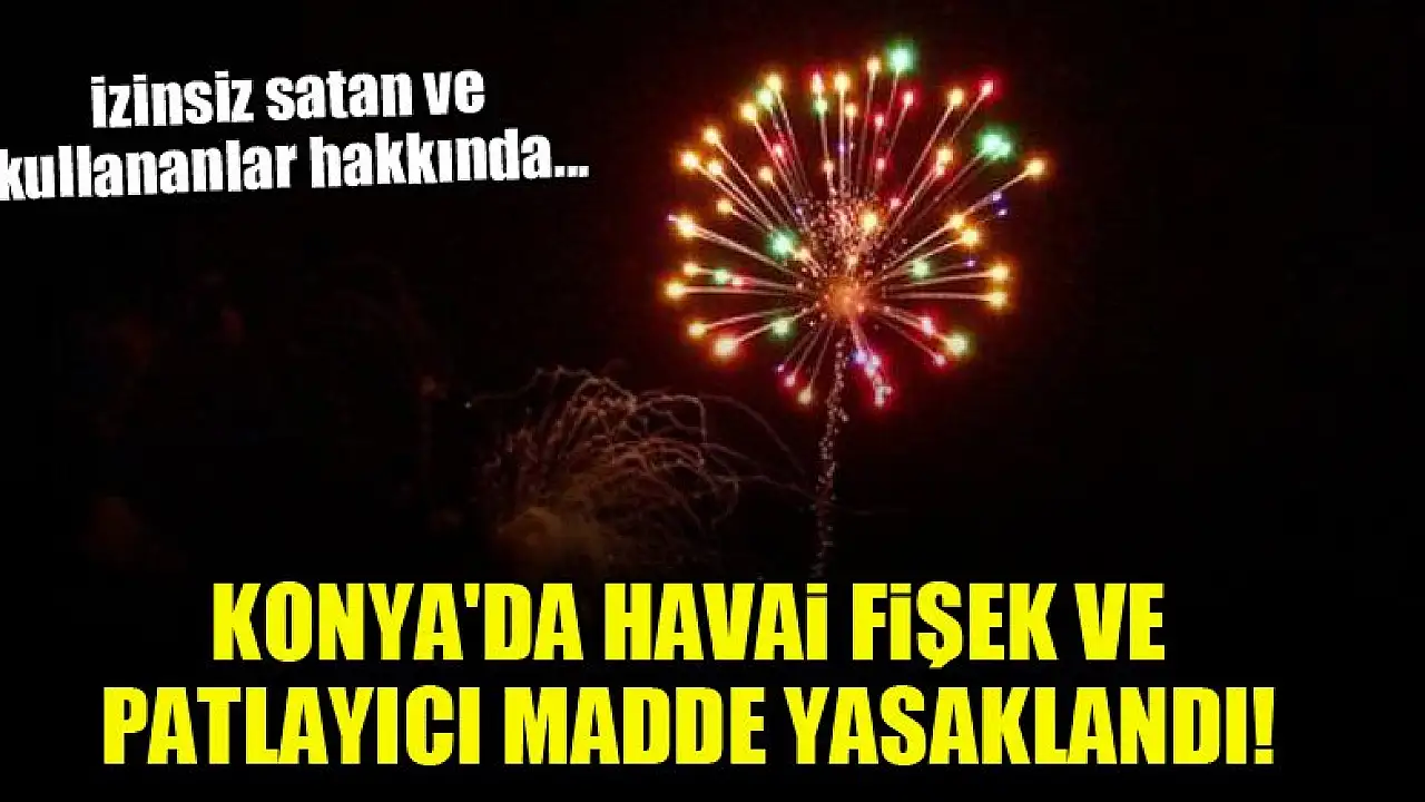Konya'da, havai fişek, oyun ve eğlence aracı olarak kullanılan piroteknik patlayıcı madde mamullerinin izinsiz satışı ve kullanılması yasaklandı.