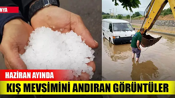 Konya'nın Hüyük ilçesinde haziran ayında kış mevsimini andıran görüntüler ortaya çıktı. Öğlen saatlerinde etkili olmaya başlayan kuvvetli yağış ve dolu ilçe merkezinde yolları adeta göle çevirirken, bazı ekili alanlar zarar gördü.