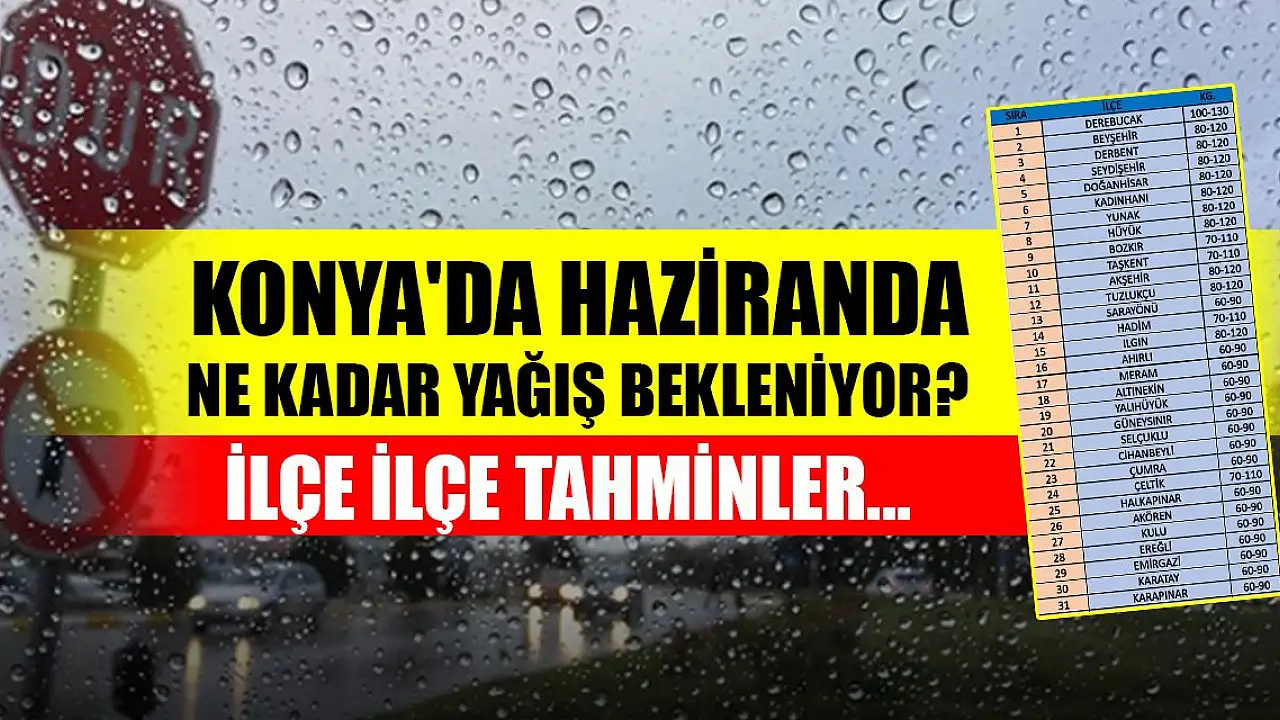 İşte Konya'nın ilçelerinde 8 Haziran-30 Haziran arası metrekareye düşmesi beklenen minimum ve maksimum yağış miktarı...