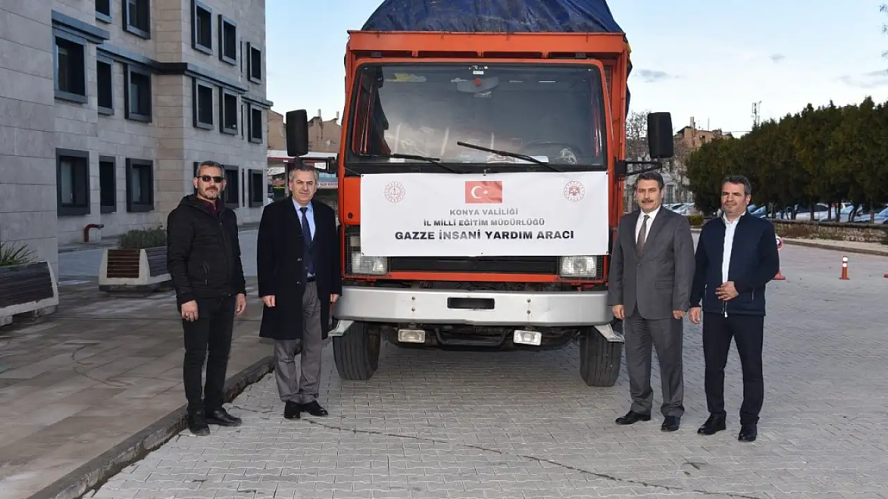 Konya İl Milli Eğitim Müdürlüğünce Gazze'deki kadın ve çocuklara gönderilmek üzere hazırlanan insani yardım malzemesi yola çıktı.