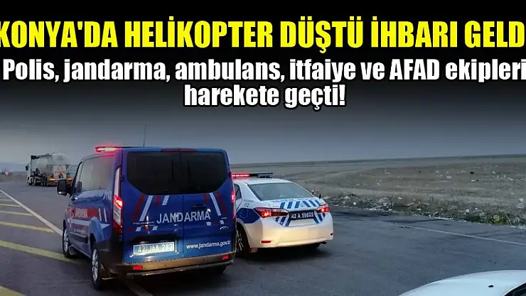 Konya'da bir kişinin helikopter düştüğü yönündeki ihbarı üzerine söz konusu bölgeye polis, jandarma, ambulans, itfaiye ve AFAD ekipleri sevk edildi.