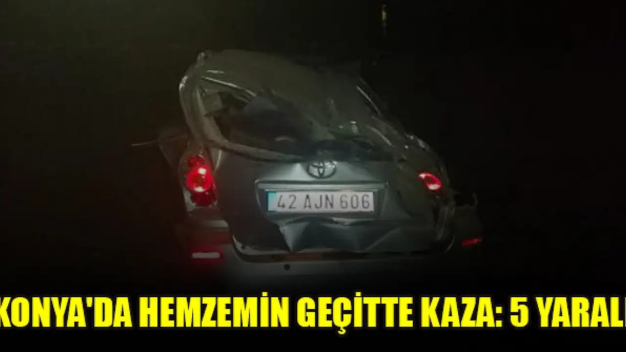Konya'nın Kadınhanı ilçesinde hemzemin geçitten geçmeye çalışan otomobil yük treninin vagonuna çarptı. Kazada araç kullanılamaz hale gelirken 5 kişi yaralandı.
