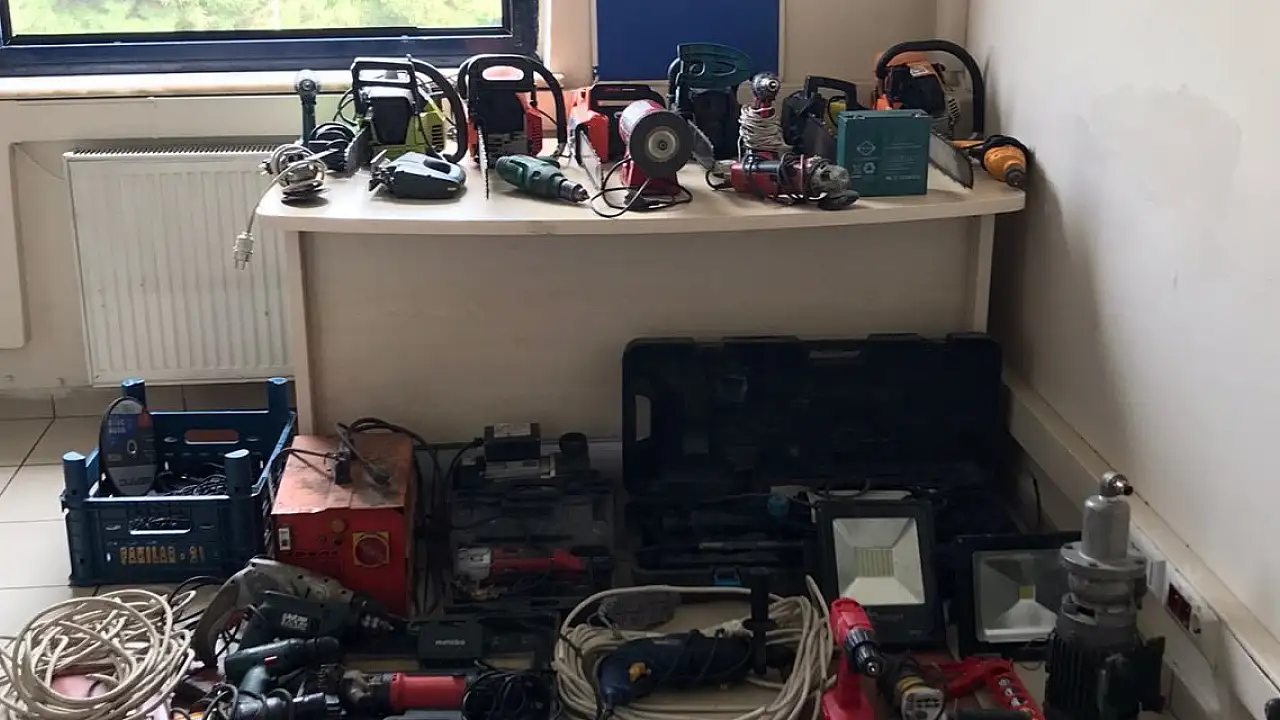 Polis ekiplerince herhangi bir tabelası olmayan ve depo olarak kullanılan adrese yapılan baskında, bağ evleri ve iş yerlerinden çalındığı düşünülen 10 adet Elektronik Testere, 15 adet Matkap, 2 adet Su Motoru, 1 adet Duvar Kırıcı, 1 adet Kaynak Makinesi, 5 adet Elektrikli Vidalama, 4 adet Flex, 2 adet Projektör ve çeşitli elektronik malzemeler olmak üzere toplamda 50 parça hırsızlık malı eşyaya polis ekiplerince el konuldu.