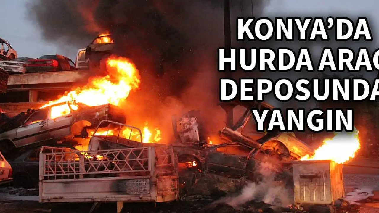 Konya'da hurda araçların bulunduğu depoda çıkan yangında 10 araç zarar gördü.