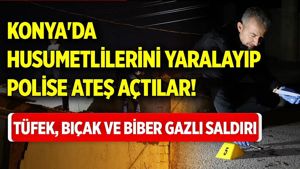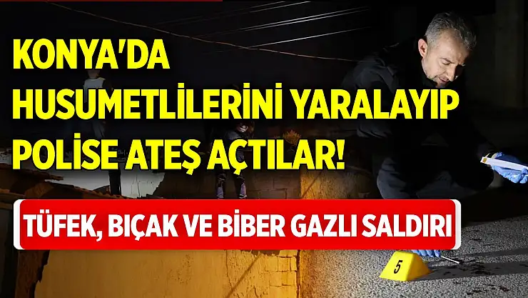 - Konya'da husumetlilerini yaralayıp polise ateş açtılar! Tüfek, bıçak ve biber gazlı saldırı