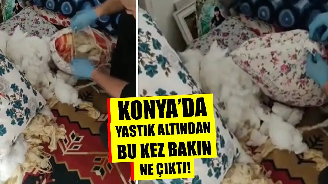 Konya'da içi yün dolu yastıktan bakın ne çıktı!