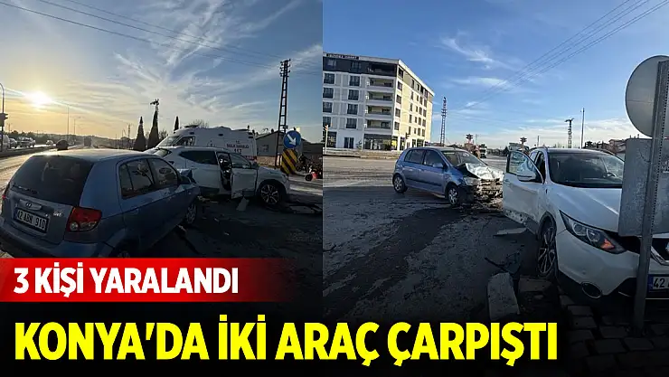 Konya'da iki araç çarpıştı: 3 kişi yaralandı