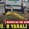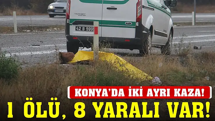 Konya'da meydana gelen 2 ayrı kazada 1 kişi öldü, 8 kişi yaralandı.
