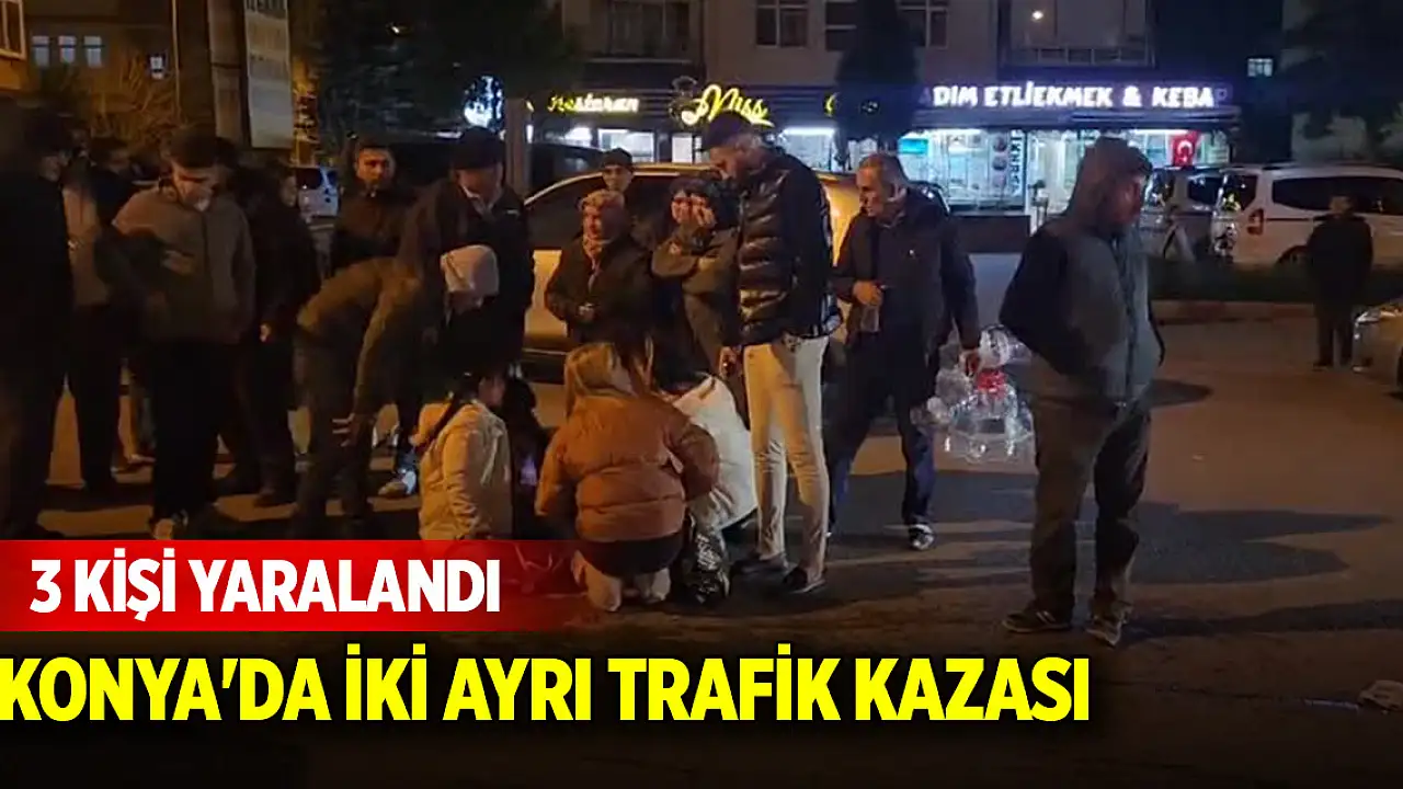 Konya'da meydana gelen iki ayrı trafik kazasında 2'si çocuk 3 kişi yaralandı.